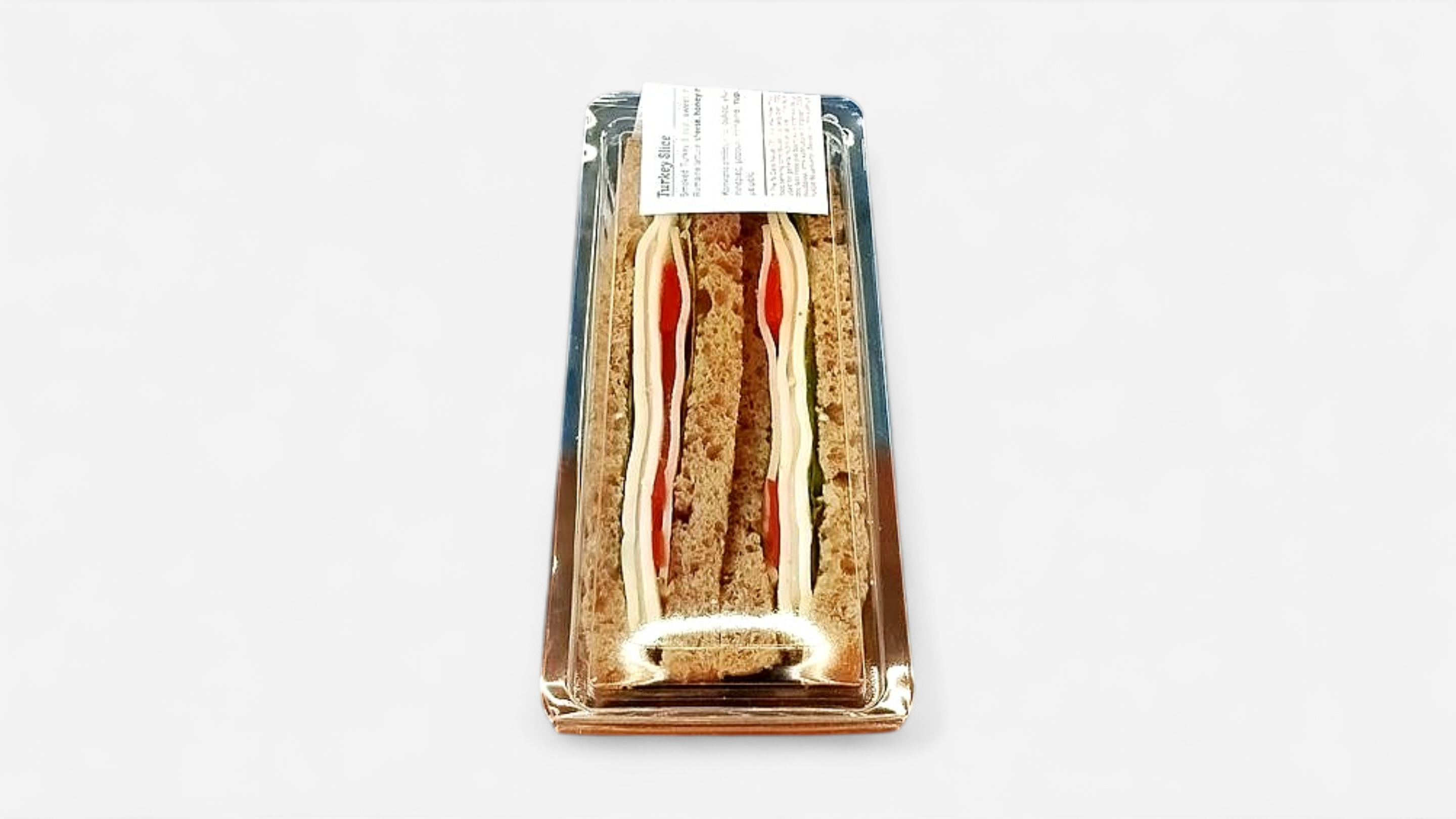 Smoked turkey, breast, sweet red peppers, romaine lettuce, cheese, honey mustard.